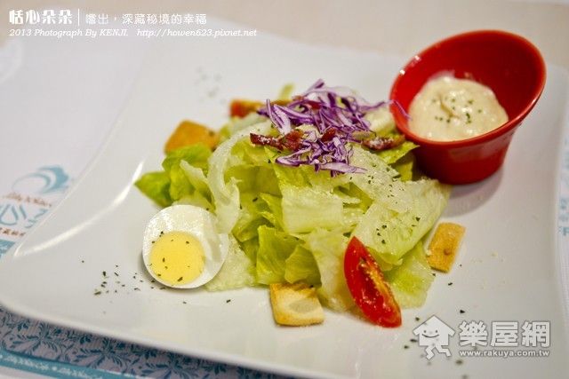 ▲羅曼蔬菜沙拉!生菜食材都挺新鮮的,尤其旁邊附的沙拉,口感挺特別的!