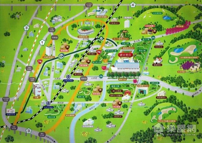 最後,還是大家最關心的生活機能啦!雖然說附近目前還是屬於相對冷清的地區,不過隨著建築物完工、大家搬進來生活,相信商店也會一家接著一家的展店;目前,我們可以看到最鄰近的熱鬧商圈還是得往東山路或是太平的樹校商圈,同時,建案基地過了太原路的新桃花源橋,大約10分鐘可抵達屯區藝文中心,相信對於未來居在此的人也是一大利多喔!