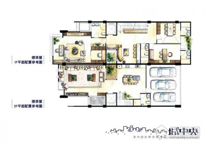 ▲1、2樓平面圖,面寬7.5米讓你可以一口氣停下3部車!