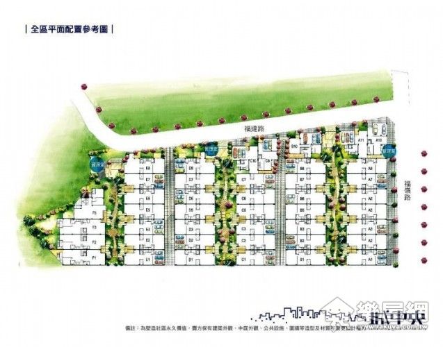 ▲全區平面參考圖,整個社區蓋的是連棟雙拼式建築。