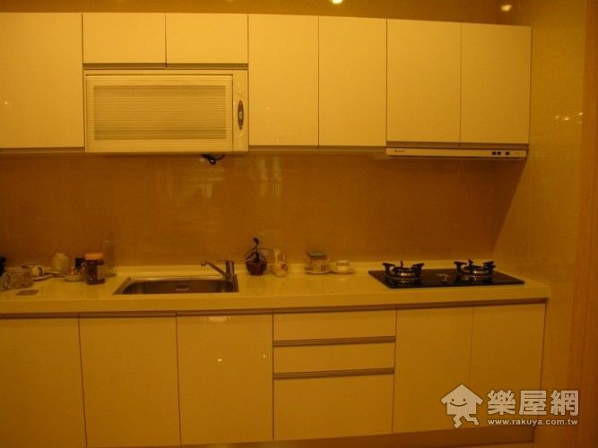 ▲簡單一體成型的淺色廚具,讓廚房乾淨大方。