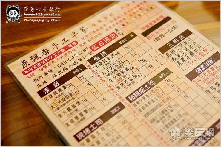 ▲「蔗飄香」的菜單!依早餐的售價上,我覺得有一點偏貴,上面的價格都是單點,飲料要另外點,但是在吃過「蔗飄香」早餐後,我是覺得還挺值得的啦!