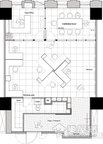 室內格局|入口玄關、辦公空間、儲藏室與機房、會議室、主管室