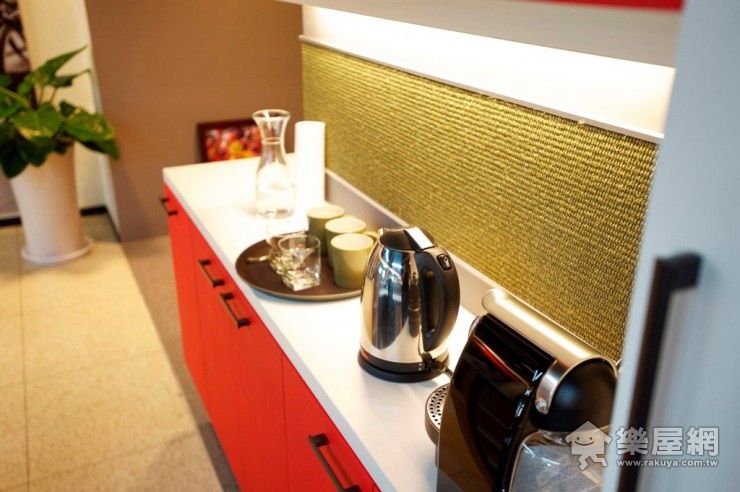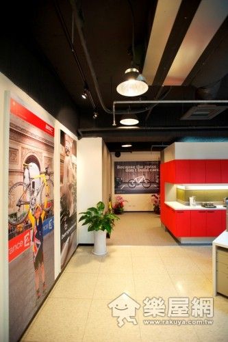 ▲灰階色系的辦公室配色,點綴形象搶眼的文宣,在燈光的渲染下更顯生動。