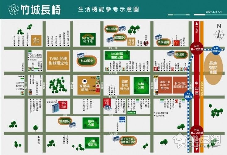 機場捷運通車在即、大型購物商場三井Outlet mall進駐、民視、TVBS媒體總部也即將陸續落成,優異的生活機能讓林口新市鎮嚴然已成為一線大城市,然而靠近捷運站的新建屋一坪要價甚至50幾萬以上,直讓人望之卻步!相較之下,不過好在靠近新市鎮的中段區域,「竹城長崎」專案45-58坪,一坪只要31-33萬,而且距離捷運站2.3公里,開車大概只要5分鐘,距離家樂福商圈更近,走路5分鐘,算一算買這裡的房子還是比較划算!