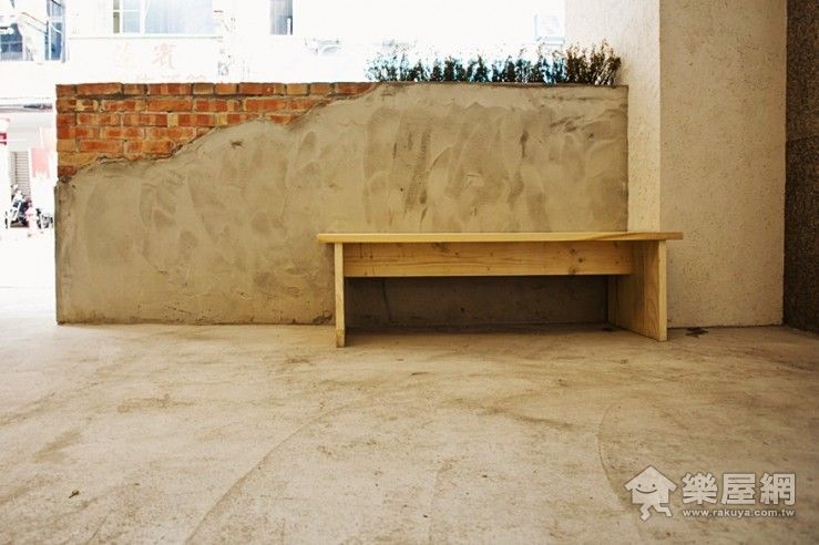 ▲庭院外的紅磚牆,砌上無拘束的水泥,只需要一只木質長凳,老屋新生的韻味不言而喻。