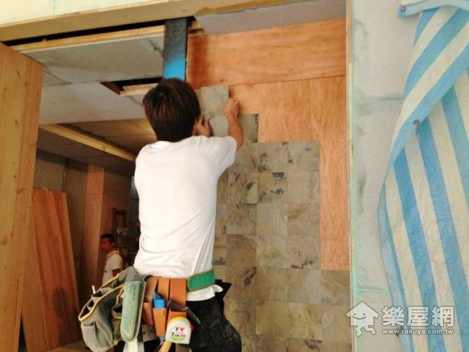 ▲規律裁切後的石材貼片,一樣是透過師傅的巧手一片片的慢慢貼上牆面,為了就是呈現不同於一般平面的質感。