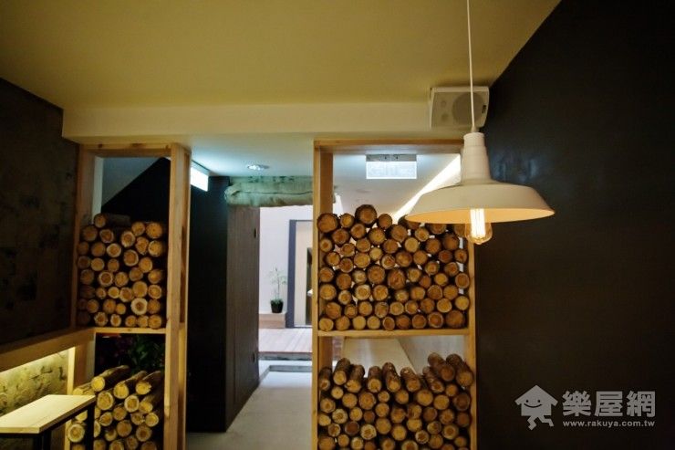 ▲通往洗手間之前,一樣有著許多原木裝置藝術,一方面可以阻隔視覺,一方面也與整體設計相呼應。