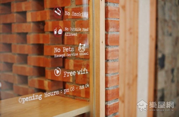 ▲細心的設計師,連店內要呈現的資訊貼紙都是親自設計,而非沿用一般現成的圖像。像是:No Pet用的就不是寵物被劃上X的圖像,而是用動物因為不能進入而悲傷哭哭的畫面,讓人感受較正面、也相對舒服。