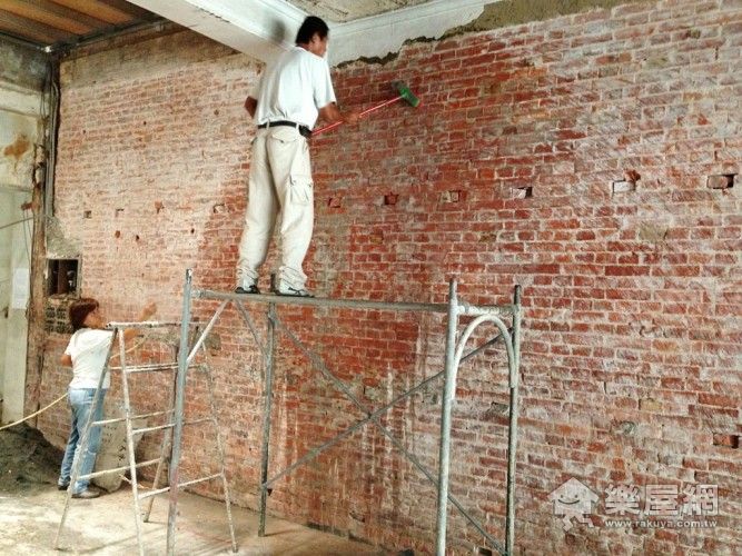 ▲原本以為是一道水泥牆,在拆除的過程中意外發現,原來是一面充滿歷史韻味的紅磚牆,於是設計師要求師傅小心的把表層的水泥刮掉,一次又一次的反覆動作,就是為了溫柔的保存這片美好的磚牆。