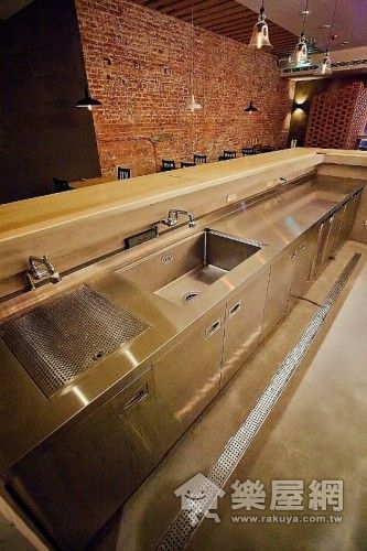 ▲吧檯內,設計師更是費盡千辛萬苦才完成這一體成型、無接縫的不鏽鋼吧檯,預埋的加長集水槽,也讓使用者在地板排水與清潔時更加的方便,這般的用心良苦真是令人感動啊!