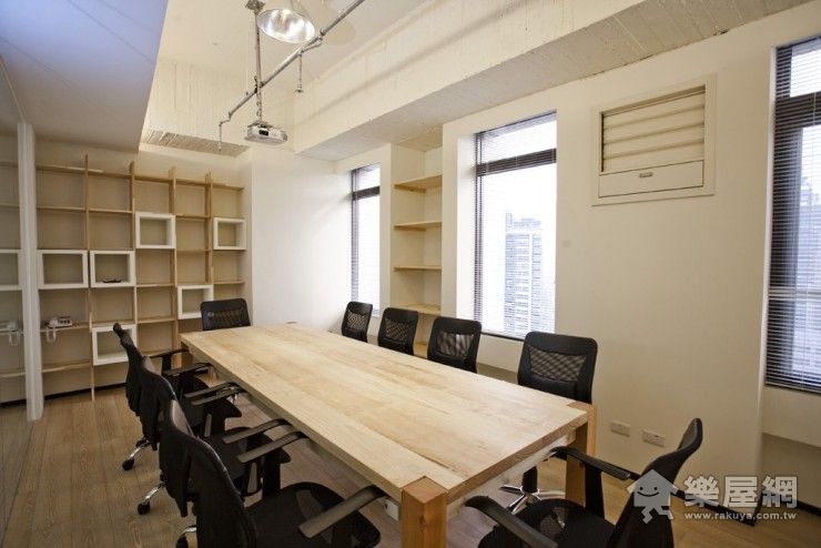 ▲可以容納10人的會議室,木製設計從會議桌到書櫃、樣品架,全都是設計師為這個辦公空間量身打造。