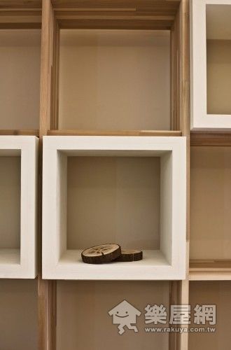 ▲木製的書櫃,以原木為基底,搭配上幾個漆上白色的木框點綴,為整體空間增添了幾許活潑的律動。