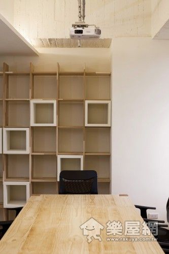 ▲錯落式漸層工作隔屏,大膽的不規則設記,但是搭配上方向一致的局部木作天花板,整體空間巧妙延伸、視覺感受相當流暢。