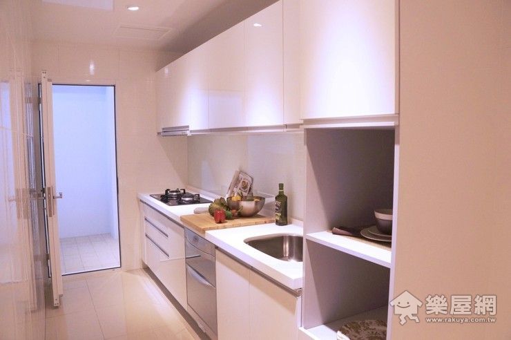 ▲廚房也是採用系統化櫥櫃設計,包括隱藏式抽油煙機、雙口爐、洗滌槽、烘碗機…等等,一應具全。