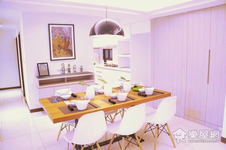 ▲餐廳就位於客廳的後方,兩處空間連成一氣,視覺上毫無障礙。