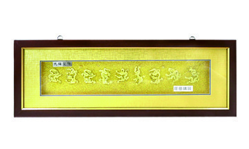 九龍圖是富貴吉祥的象徵,能助人造家財,創金庫!而在風水學方面,龍更有生旺能量磁場及制煞之功效。若在陽宅的客廳、書房或是辦公室,將九龍圖掛在身後,形成背後有靠局面,可旺主人並同時旺財,有利於工作者的事業。若欲橫梁壓門,也可以在梁上掛上九龍圖,用龍的瑞氣化解橫梁壓頂的不良氣場。