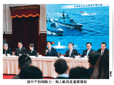 而在十一月二十六日國安高層會議後的記者會上,賴總統也明確表示,政府研擬「堅定維護國家主權,全面建構民主防禦機制」與「強化國防戰力,全方位打造國防關聯產業」兩大方案。國防部已完成《強化防衛韌性及不對稱戰力計劃採購特別條例》及預算規畫,預計未來八年(二○二六年至三三年),共投入一.二五兆元經費,不過民進黨在立法院並未過半,後續仍待朝野協商。