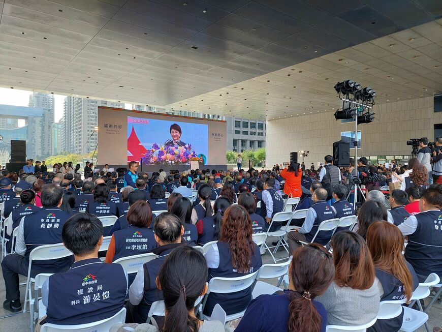 ▲ 台中市長盧秀燕(24)日於市府廣場前舉行施政7週年成果記者會現場盛況。