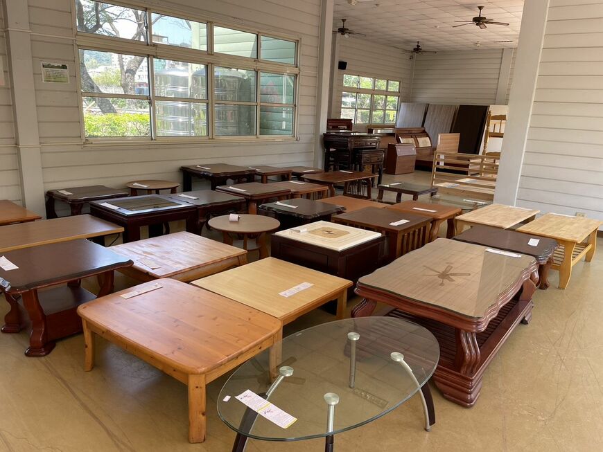 寶之林廢棄家具再生中心不僅販售各式經修復的桌椅、櫥櫃等家具,也提供經過整新的二手腳踏車。對於已不堪修復的家具,中心則會拆解其中狀況良好的木材與零件,轉化為充滿巧思的DIY素材或手工小物,例如小巧的板凳、原木筆記本等,充分展現資源循環再利用的多元創意。