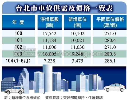 然而光是油價下跌、燃料成本降低,加上汽車產業競爭激烈、車價下跌,都在在導致近年新購車輛成長速度驚人,遠遠高過車位增加速度。一邊供給量縮,另一邊需求卻有增無減,就幾乎已可斷定,北市車位將奇貨可居,價格看俏。尤其車位購買門檻低、租賃市場潛力又大,自是相當不錯的房產投資選擇。