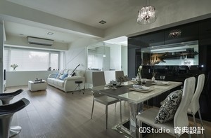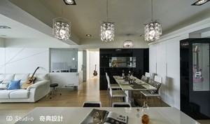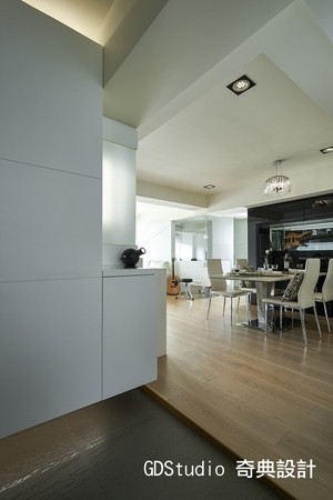 化繁為簡 回歸黑白純粹在設計理念一向是『以人為本』的奇典設計團隊,本次位於士林的作品,即是從屋主本身的興趣特質,定調現代簡約的住宅風格;而烤漆玻璃展示櫃收藏的吉他,則化作空間藝術,讓每個從玄關踏進屋內的人,都能欣賞成為視覺焦點的吉他。
