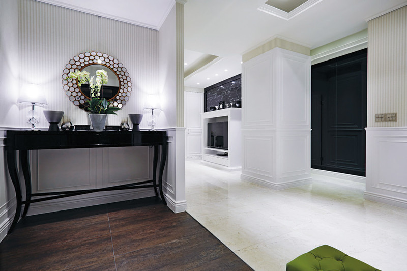 古美設計楊尚武設計總監與屋主第一次合作即是規劃同建築較高樓層的宅邸設計,有過之前合作的愉快經驗與默契,所以當與屋主夫妻就位於建築一樓的此案溝通時,即就「風格」的鋪述做了通盤的掌握,首先就屋主夫妻喜愛的品味、調性及希冀的理想居宅歸納出新古典風格,作為設計主題以及空間裡展現美學貴性的涵養所在。