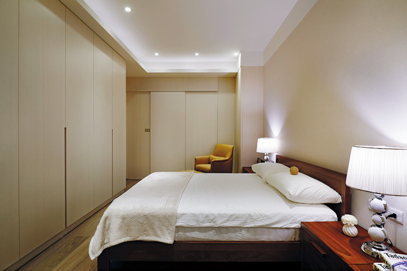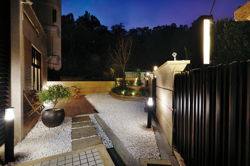 雙開門扉界定客、餐廳區域之間的屬性,可以開放也可以各自獨立,尤其連貫室外後方庭院,庭園當中燈光與灑水裝置全部採自動化系統設計,方便屋主生活與日後維護,透過落地門窗的串聯,讓蓊鬱綠意與充裕陽光進入室內,建構舒適且安居的宅邸內涵。於私密空間規劃上,採套房式雙主臥規劃,同時設計各自的更衣室,體貼男女主人希冀的獨立臥眠空間,並且擁有完整的休憩機能,確保有充足的光線與通風的環境。