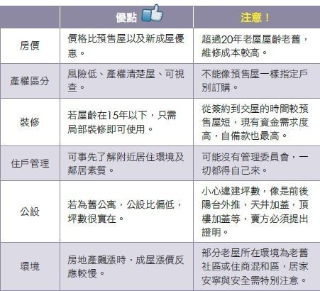 房子住了10、20年,人也從小孩變成大人,房屋出現老化、結構的問題,家庭成員也有所變化。隨著現今房價日益爬升,許多正住在老房子裡的人正面臨到困難的抉擇,要老屋重新翻新、等待都更,亦或是直接買新房的考量。不論是哪一項,都需要考量房價和裝潢費用的成本,也因為老房子可能是傳承自祖輩、生活圈的習慣性或者買賣較新屋CP值更高,而讓許多人在看房一輪之後決定買老房,老屋有著許多優點,但這麼好是不是也有什麼該注意的地方?可以從下方表格的優缺點比較來考量。