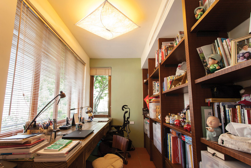 古鎮榮說:「回家就是要獲得充分的休息,而且家的核心是在於家人共同相處的公共空間而不是各自的房間裡,所以在整修的時候我們特別擴充了全家人共同相處的公共區域,從一進門的玄關、臨窗的小座位區、一氣呵成的客餐廳和廚房,運用穿透拉門可以開啟閉合的書房區,這都是我們刻意營造出來的大尺度共享空間,同時因為我和太太都很喜歡自然環境,所以我們非常重視窗景,大尺度的落地拉門和窗戶從一進門延續到客廳和書房,隨時隨地都能遠眺戶外的青山白雲,享受大自然無時無刻變化的豐富景色。」