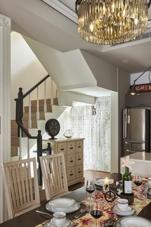 以回憶為設計載體,運用溫潤質地,串連起居家表情,是美式住宅迷人的魅力所在。而充滿仿舊氛圍的室內空間,除了替一家人的溫馨故事增色不少外,也在隨興不羈的設計步調中,勾勒出浪漫動人的大宅樣貌。