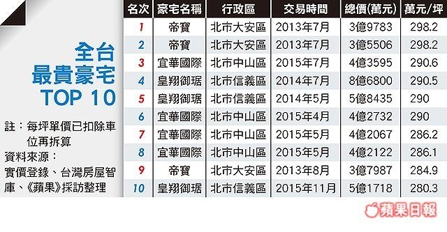 全台最貴豪宅 TOP 10