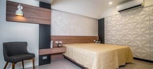 進到私領域,則可從設計節奏中,嗅出屋主對生活的簡樸想像,以淺色系的木質床頭鋪陳,白色牆面則運用「米」字形的編排設計搭配黑邊,將簡約舒適的主臥,帶出現代人文的藝術風貌。