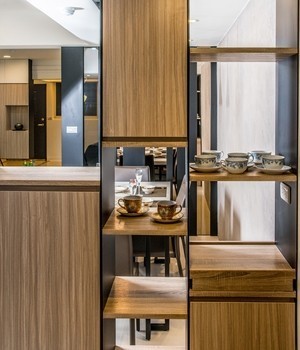 「設計,是建構幸福家的舞台」,好的設計不僅能適切分配空間,更應適度留白,襯托出屋主的品味風格。位於中和的簡約大宅,以各式木材創造出深淺不一的質樸氛圍,並特別為喜好品茗的屋主,設計了鐵灰質感的收納櫃,珍藏各式風格的茶具,營造宜室宜居的幸福氣息。