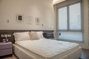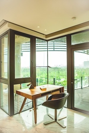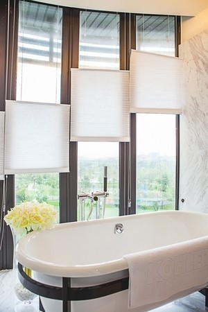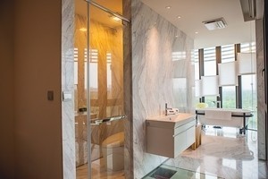 不過,這樣極簡的設計風韻,在重視機能的場域中,仍舊對機能要求存有堅持。以白色大理石打造令人稱羨的衛浴設備,並在一旁擺放造型木頭造景,並將浴廁和古典的浴缸分離,讓家中屋主能在遼闊景深的落地窗旁,享受舒適泡澡的悠閒時光。