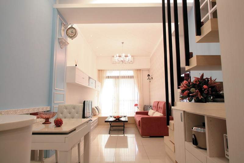 喜歡鄉村風的兩姊妹,希望能在有限的空間內滿足最多元且豐富的生活功能,設計師漂亮的在20坪的屋子裡,一點也不擁擠的呈現出三房兩廳,不僅擁有大容量的收納空間,還有一個可坐可臥,便於招待朋友的起居平台,滿足姊妹兩多面向的需求。