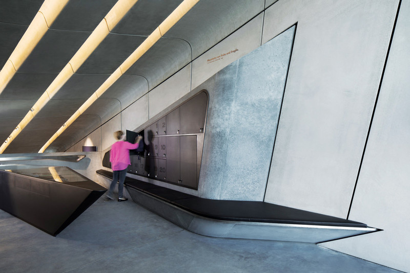 近日甫落成開放的MMM Corones,是The Messner Mountain Museum於Kronplatz峰頂六個建築物當中最後完成的建築體,由知名的伊拉克裔英國建築師Zaha Hadid操刀設計,維持她一貫的設計風格,淺灰色調的混凝土建材搭配流線型的未來感造型,從崖壁突出的懸臂式觀景台,在山峰頂端其存在感更為明顯且更具戲劇張力。