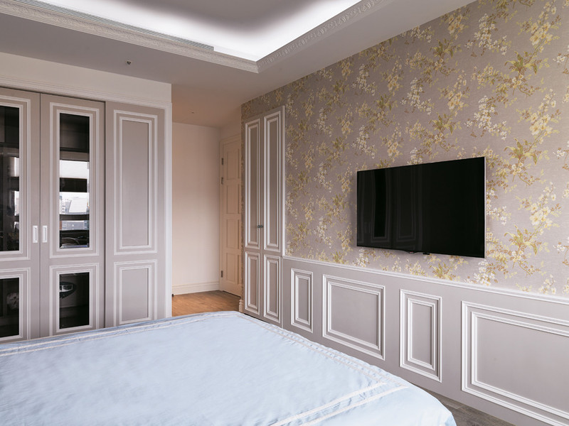 空間本身坐落於台北市內湖地區,規劃上不作太多更動,僅將玄關、客廳微調出開敞的尺度,設計中考量到屋主希冀大器醞釀的空間內涵,於是在所有語彙的調整下,雖然擁有一對可愛的雙胞胎女兒,但是考量到未來生活的調性,故盡量減少較為可愛或粉嫩的元素或彩度,摒除過多繁複的線板修飾,僅在立面當中作對稱及線條比例的安排,攏絡全室細緻而豐沛的藝術涵養。
