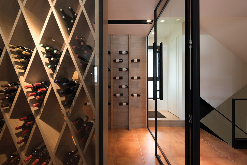 有鑑於竹北周邊的高科技產業特色,四樓特地規劃為紅酒俱樂部,內建專業恆溫酒窖、投影設備與舒適洽談、品酒區,以滿足潛在的高端商務需求,恆溫酒窖採玻璃隔間,因此從外部即可欣賞到各式木質酒櫃的精美造型,地面則鋪設復古紅磚搭配深灰磚牆,營造老俱樂部般的優雅時間感。