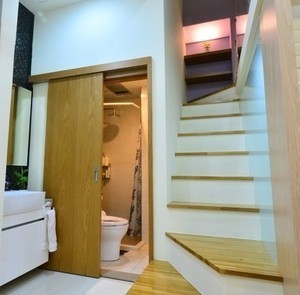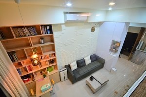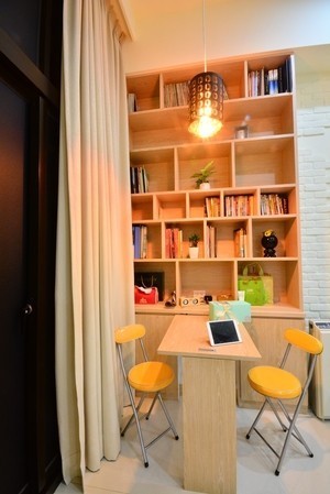 走進十幾坪的都會小宅,映入眼簾的便是開闊的溫潤氛圍。運用挑高四米的空間坪效及淺色媒材,不僅讓客餐廳顯得舒適無壓,以文化石牆面搭配大量的嵌燈光照,更是彌補了原屋況採光不足的缺陷,也將原木鋪陳的公共場域,烘托得更為質樸自然。